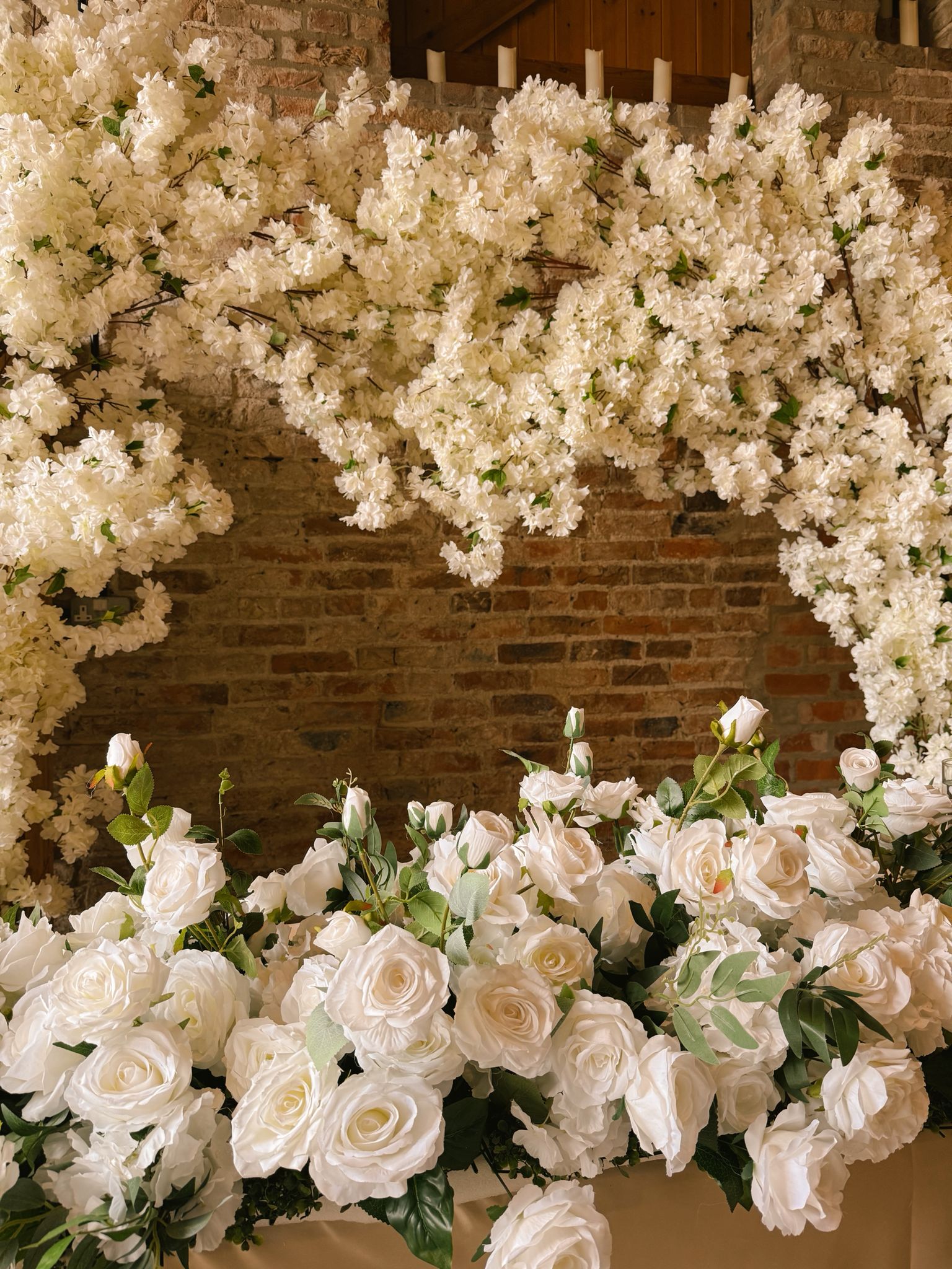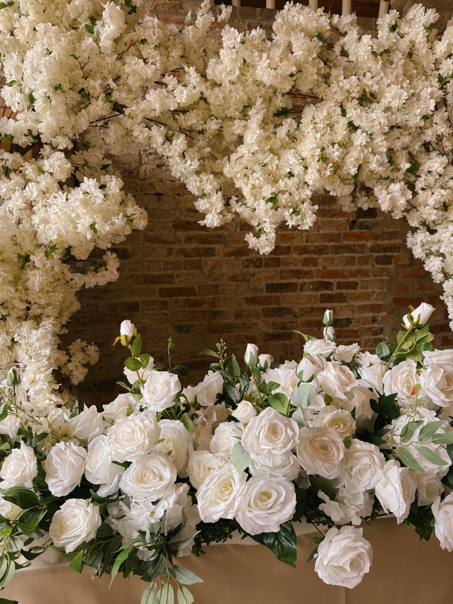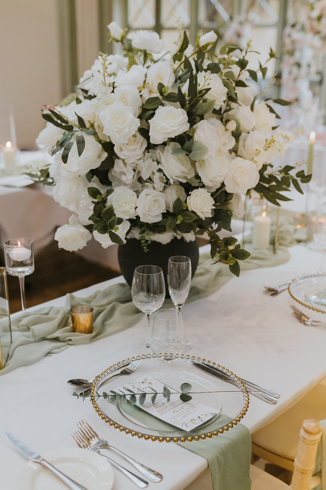 Timeless, romantic and effortlessly refined, The Thea is designed in soft whites and natural-looking greenery for a look that feels elegant, cohesive and beautifully understated.