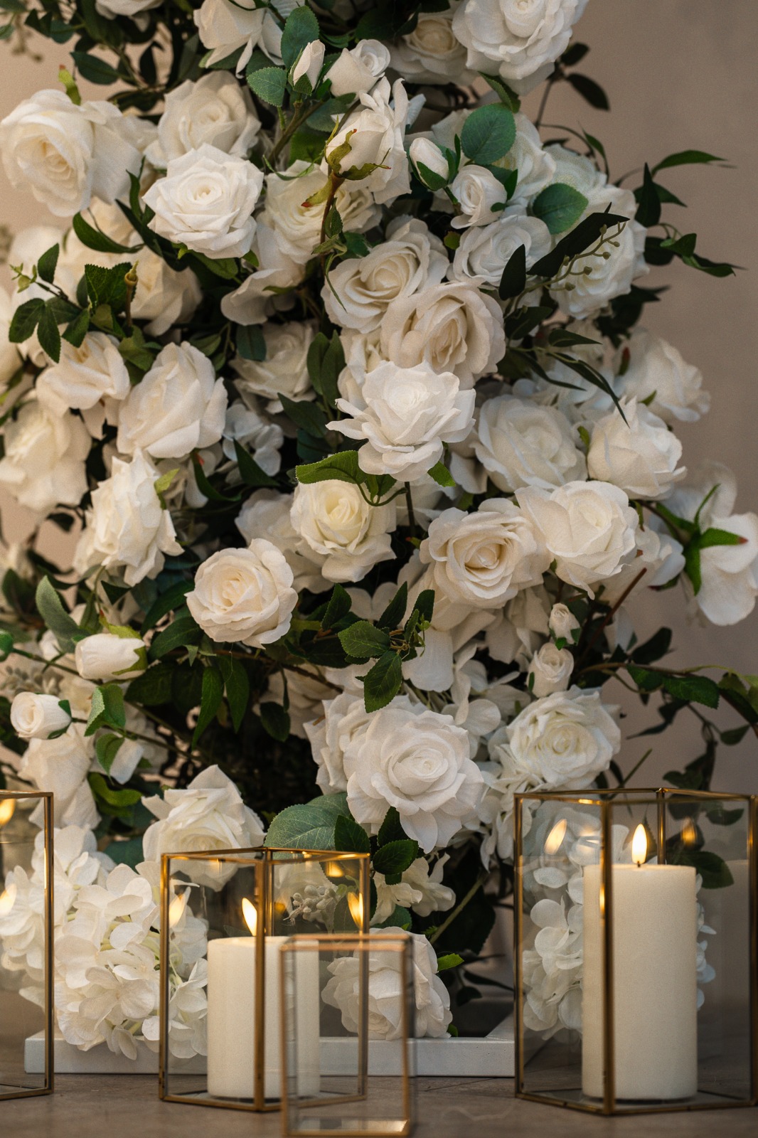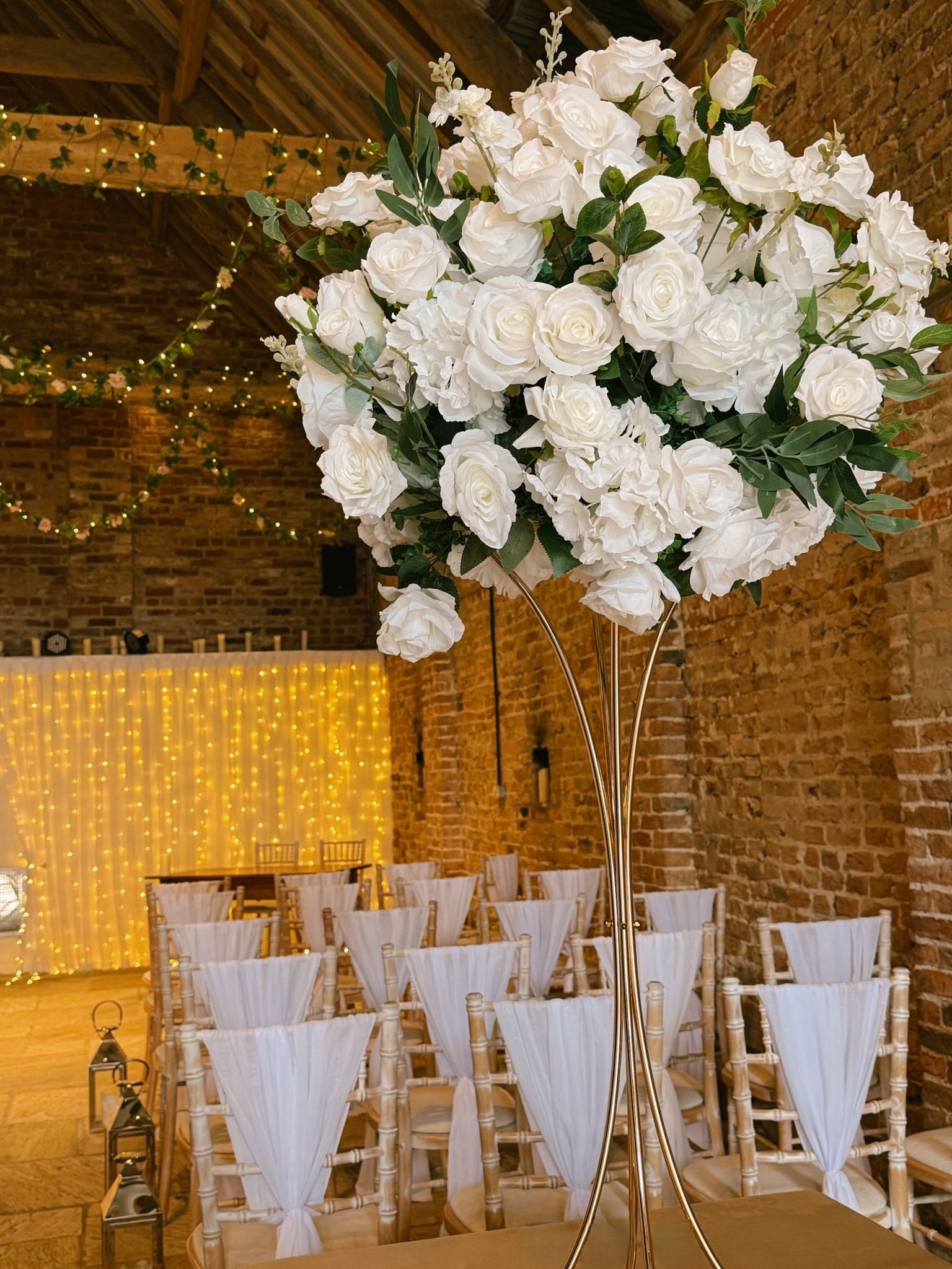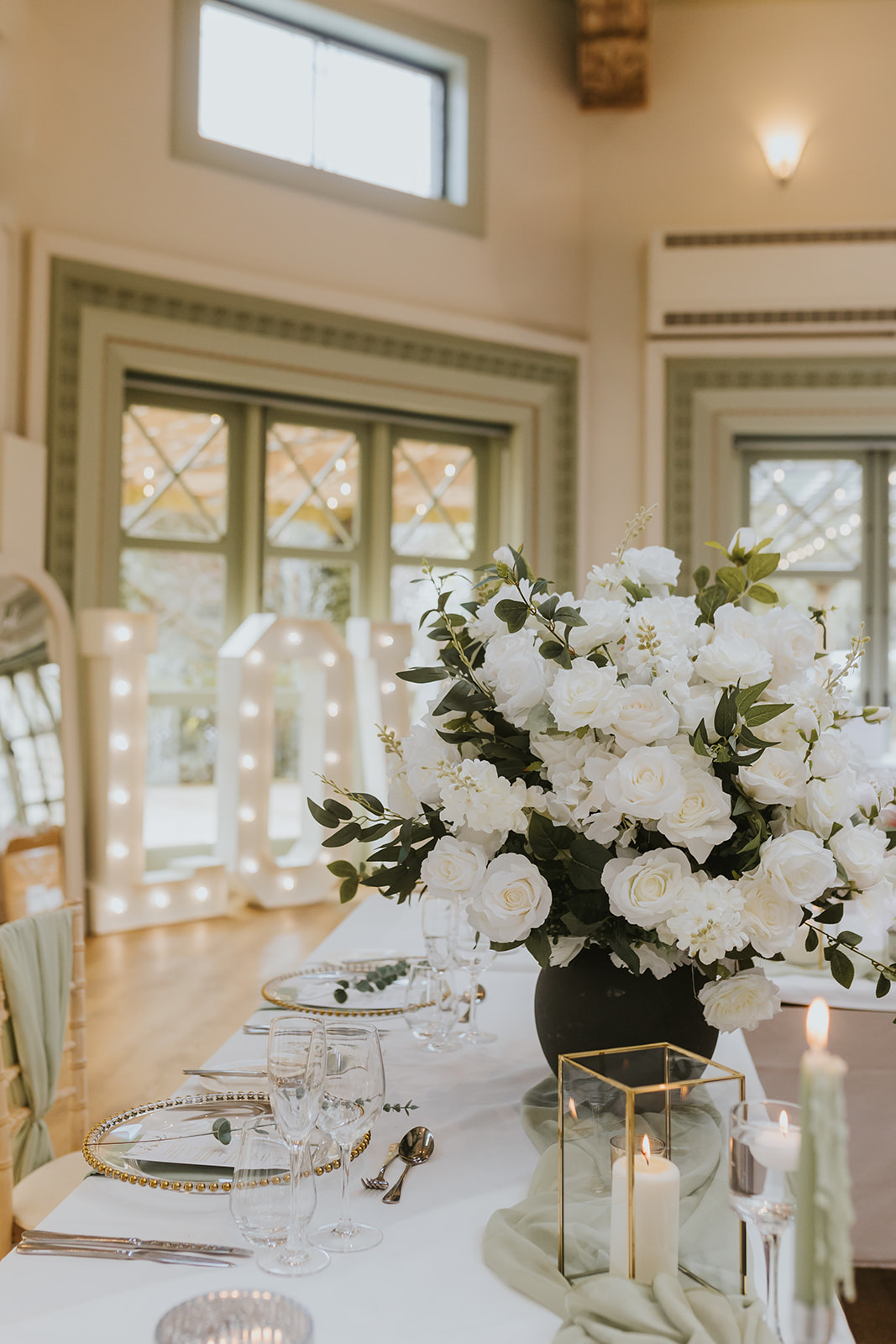 Timeless, romantic and effortlessly refined, The Thea is designed in soft whites and natural-looking greenery for a look that feels elegant, cohesive and beautifully understated.